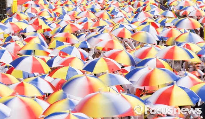 | △ 우산 퍼포먼스 펼치는 한국가정어린이집연합회 |