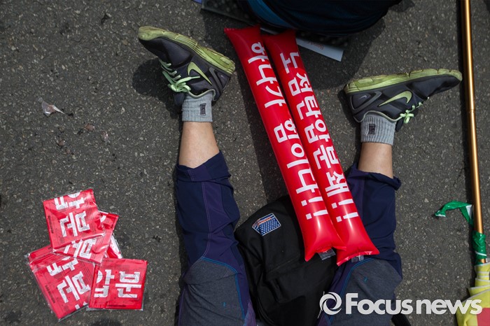(서울=포커스뉴스) 13일 오후 서울 용산구 서울역광장에서 '제 29주년 6.13 정신계승 전국노점상대회'가 열리고 있다. 6.13 대회는 1988년 6월 13일 억눌린 노점상의 울분이 처음 세상 밖으로 터져 나온 날을 기념하기 위한 날이며 이번 집회에서는 노점관리대책 중단, 노점 생존권 보장, 기본법 및 노점상보호 특별법 제정 등을 요구했다.