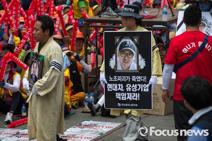 | △ 전국노점상대회 참석하는 故한광호 영정 |