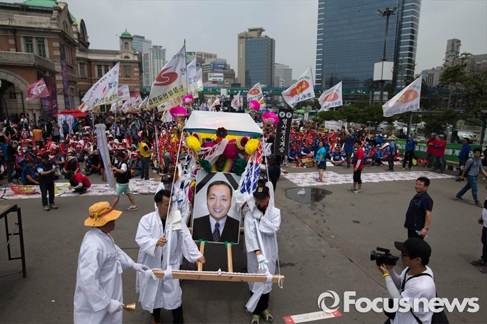 | △ 서울역 들어오는 故 한광호씨 상여 |