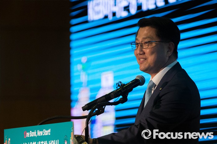 (서울=포커스뉴스) 13일 오후 서울 중구 KEB 하나은행 본점에서 열린 'One Bank, New Start' 선언식에 참석한 함영주 KEB 하나은행장이 축사를 하고 있다.
