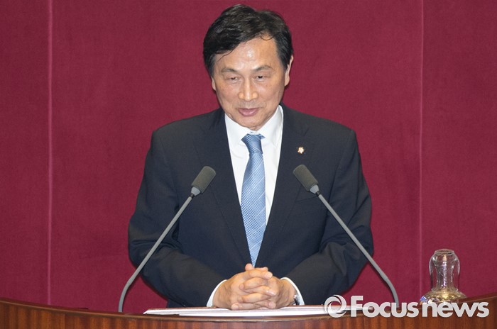 (서울=포커스뉴스) 13일 오후 서울 여의도 국회에서 열린 343회 국회(임시회) 2차 본회의에 참석한 유재중 신임 안전행정위원장이 당선 인사를 하고 있다.