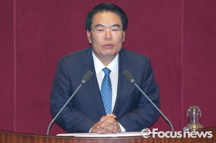 (서울=포커스뉴스) 13일 오후 서울 여의도 국회에서 열린 343회 국회(임시회) 2차 본회의에 참석한 백재현 신임 윤리특별위원장이 당선 인사를 하고 있다.