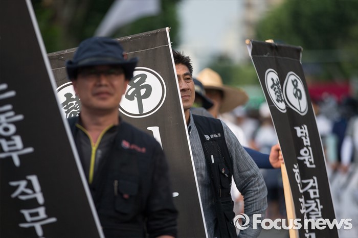 (서울=포커스뉴스) 13일 오후 유성기업 노동자 故 한광호씨의 분향소를 양재동 현대차 본사 앞으로 옮기는 꽃길 100리 행진에 참여한 노동자들이 시청 분향소를 떠나 국회를 향하고 있다.
