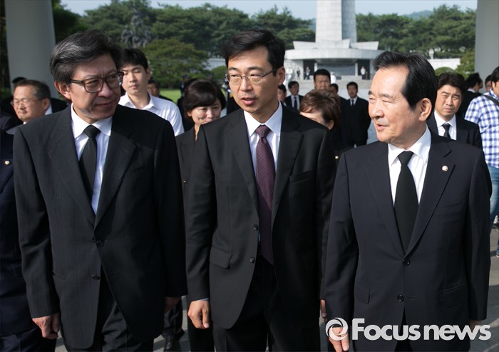 (서울=포커스뉴스) 정세균(오른쪽) 국회의장과 박형준(왼쪽) 국회 사무총장이 14일 오전 동작구 국립서울현충원을 방문해 참배를 마친 뒤 이동하고 있다.