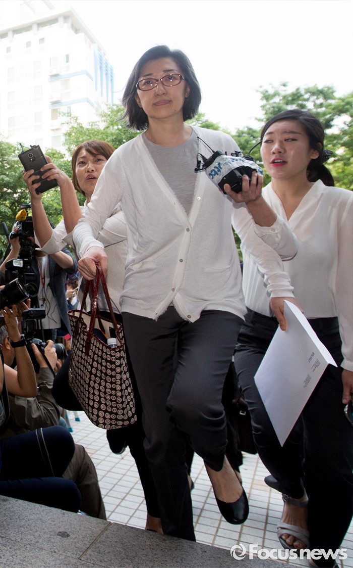 (서울=포커스뉴스) 미공개 정보를 이용해 주가하락 손실을 피한 혐의를 받고 있는 최은영 전 한진해운 회장이 14일 오전 서울 양천구 남부지방법원에서 영장실질심사를 받기 위해 법정으로 향하고 있다.