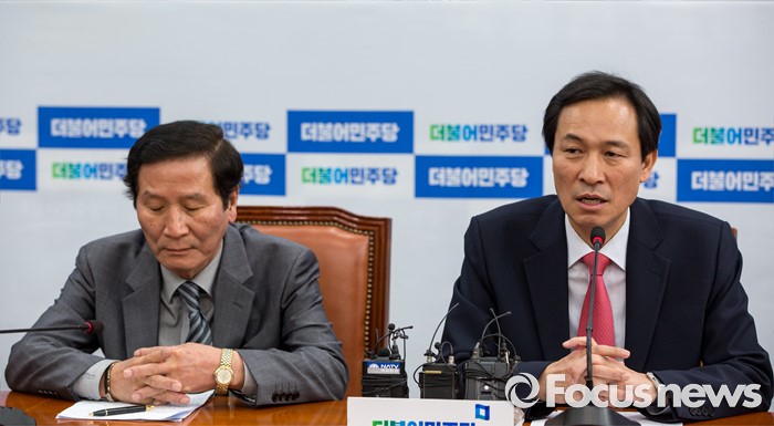 (서울=포커스뉴스) 우상호 더불어민주당 원내대표가 14일 오전 서울 여의도 국회에서 열린 '개성공단기업협회 면담'에 앞서 모두발언 하고 있다.