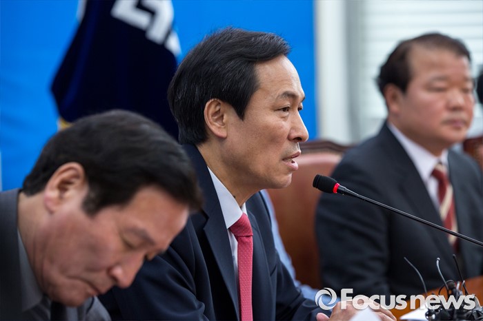 (서울=포커스뉴스) 우상호 더불어민주당 원내대표가 14일 오전 서울 여의도 국회에서 열린 '개성공단기업협회 면담'에 앞서 모두발언 하고 있다.