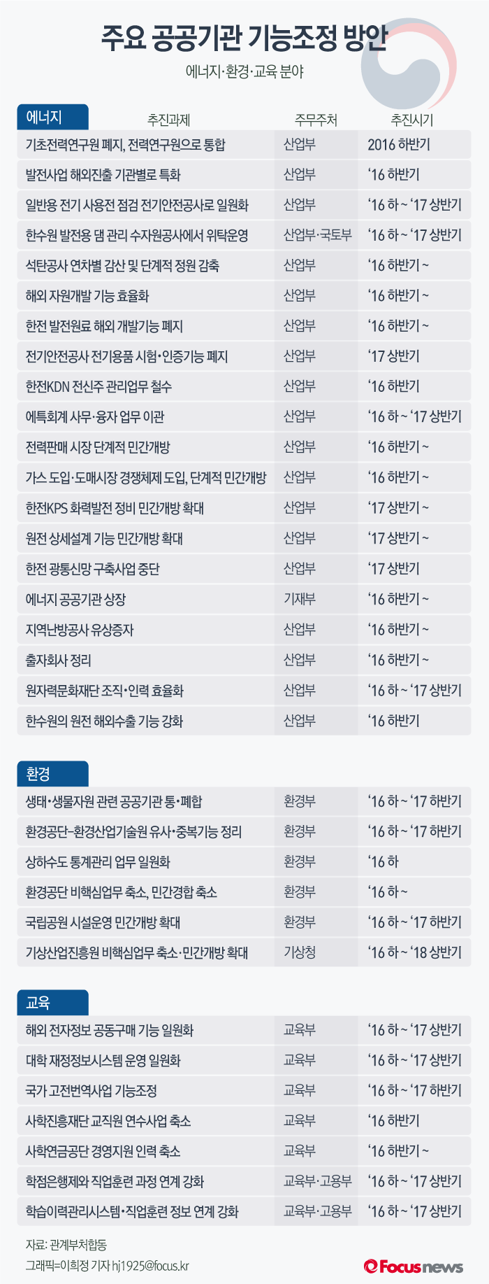 | △ [그래픽] 주요 공공기관 기능조정 방안 |