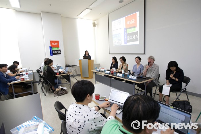 (서울=포커스뉴스) 14일 오후 서울 중구 서울시립미술관에서 백남준 10주기 추모전-천경자 1주기 추모전 기자간담회가 열리고 있다. '백남준∞플럭서스' 추모전은 내달 31일(일)까지 열리며 '천경자 1주기 추모전 '바람은 불어도 좋다. 어짜피 부는 바람이다' 는 8월 7일까지 열리게 된다.