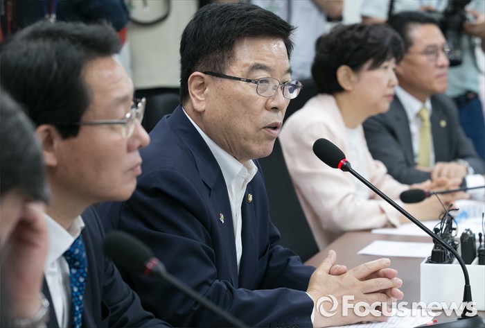 (서울=포커스뉴스) 14일 오후 서울 여의도 국회에서 열린 맞춤형 보육 관련 당정간담회에 참석한 김광림(오른쪽) 새누리당 정책위의장이 모두발언을 하고 있다.