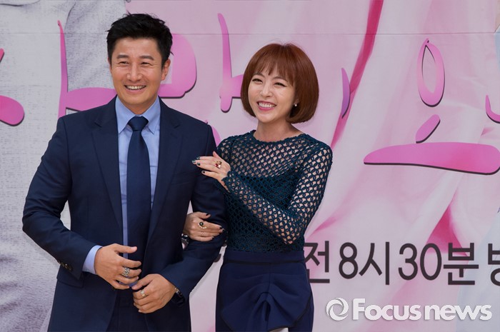 (서울=포커스뉴스) 14일 오후 서울 양천구 SBS 목동사옥에서 열린 SBS 일일드라마 '사랑이 오네요' 제작발표회에 참석한 배우 이훈(왼쪽)과 심은진이 포토타임을 갖고 있다.