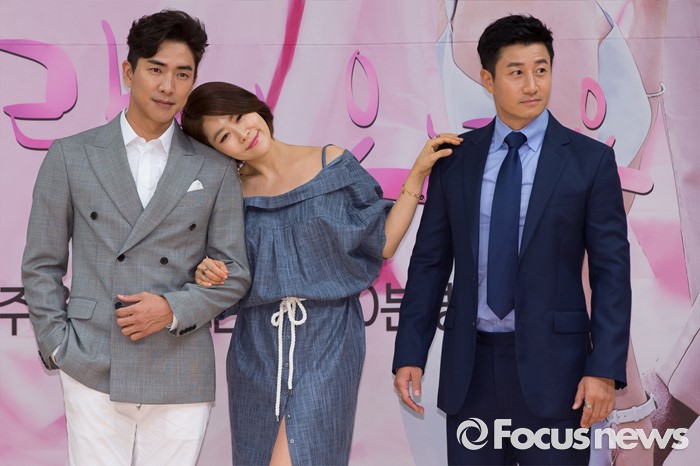 (서울=포커스뉴스) 14일 오후 서울 양천구 SBS 목동사옥에서 열린 SBS 일일드라마 '사랑이 오네요' 제작발표회에 참석한 배우 (왼쪽부터) 고세원, 김지영, 이훈이 포토타임을 갖고 있다.