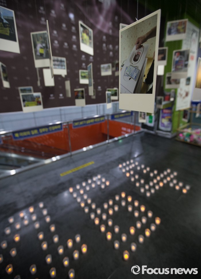 (서울=포커스뉴스)14일 오후 서울 중구 서울시민청에서 '2000일간의 기록-가습기살균제 피해 사진전'이 열리고 있다. 가습기살균제 피해자와 가족모임과 환경보건시민센터가 주관하는 이번 전시는 23일까지 열리며 가습기살균제 피해자 사진과 항의행동 기록, 희생자에 대한 추모 기록 등이 전시된다.