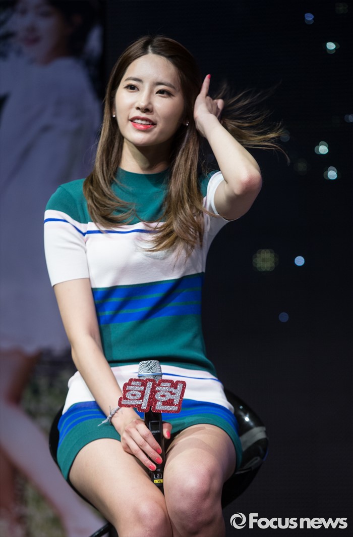 (서울=포커스뉴스) 14일 오후 서울 마포구 롯데카드 아트센터에서 열린 걸그룹 다이아의 두번째 앨범 'HAPPY ENDING' 발표 쇼케이스에 참여한 멤버 희현이 머리카락을 정돈하고 있다.