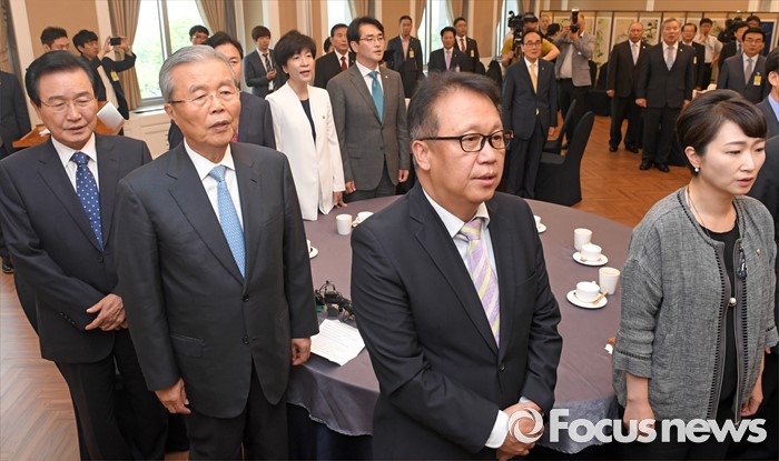 | △ 애국가 부르는 김종인 대표와 의원들 |