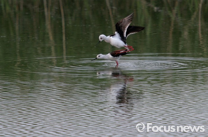 (인천=포커스뉴스) 장다리물떼새 부부가 인천시 영종도 습지에서 짝짓기를 하고 있다.