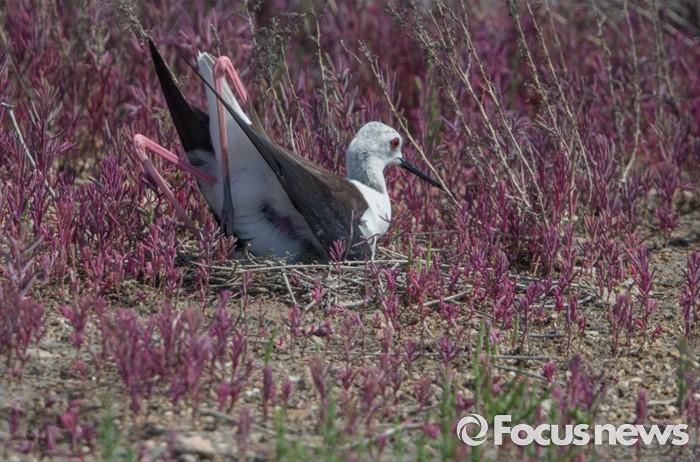 (인천=포커스뉴스) 영종도 매립지 칠면초위에 둥지를 튼 장다리물떼새 암컷이 몸을 움직여 가슴으로 알을 굴리고 있다.