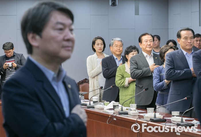 | △ 국민의례하는 안철수 대표와 의원들 |