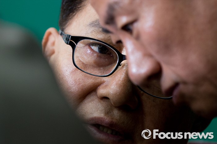 (서울=포커스뉴스) 박지원 국민의당 원내대표와 김명진 원내대표비서실장이 15일 오전 서울 여의도 국회에서 열린 최고위원회의에 참석해 대화를 나누고 있다.