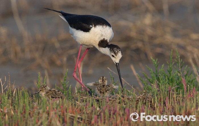 (인천=포커스뉴스) 희귀조 장다리물떼새가 14일 오후 수도권인 인천시 영종도 매립지내 작은 습지에서 7쌍이 번식활동을 하고 있다.