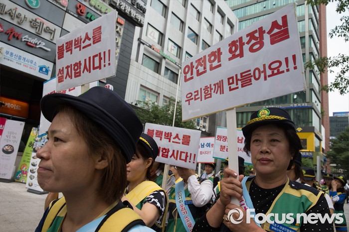 (서울=포커스뉴스) 15일 오전 서울 강남구 강남역인근에서 안전문화운동 실천협의회, 여성 민방대원들이 여성 안전 대책을 촉구하며 캠페인을 벌이고 있다.