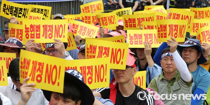 (세종=포커스뉴스) NH농협중앙회노동조합 구성원들이 15일 오전 세종시 정부세종청사 농림축산식품부 앞에서 농협법 개정안 반대 투쟁 선포식을 열고 농협법 개정반대를 촉구하고 있다.