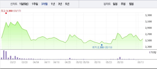 큐브 엔터는 2015년 전년 동기 대비 15.6% 증가한 233억원의 매출액을 기록했다. 그렇지만 큐브재팬 설립 비용 등이 발생, 7억원의 영업이익을 거두는데 그쳤다. 이는 전년 대비 무려 53.8% 줄어든 수치다.주가흐름<사진출처=네이버 캡쳐>