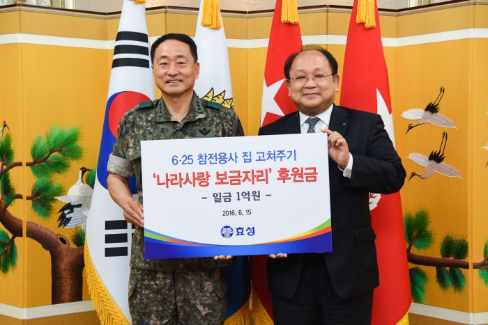 효성은 임직원들의 호국정신 함양을 위해 2012년부터 매년 꾸준히 후원해 오고 있다. 올핸 10여개 기업, 육군, 공공기관 등과 함께 30명의 참전 용사에게 새 보금자리를 선물할 예정이다.