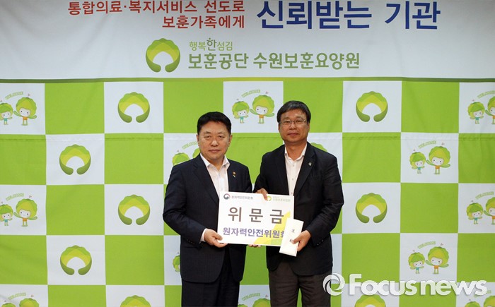 (수원=포커스뉴스) 김용환 원자력안전위원회 위원장이 15일 수원 보훈요양원을 방문해 보훈 대상자들을 위로하고 격려품을 전달하고 있다. <사진제공=원자력안전위원회>