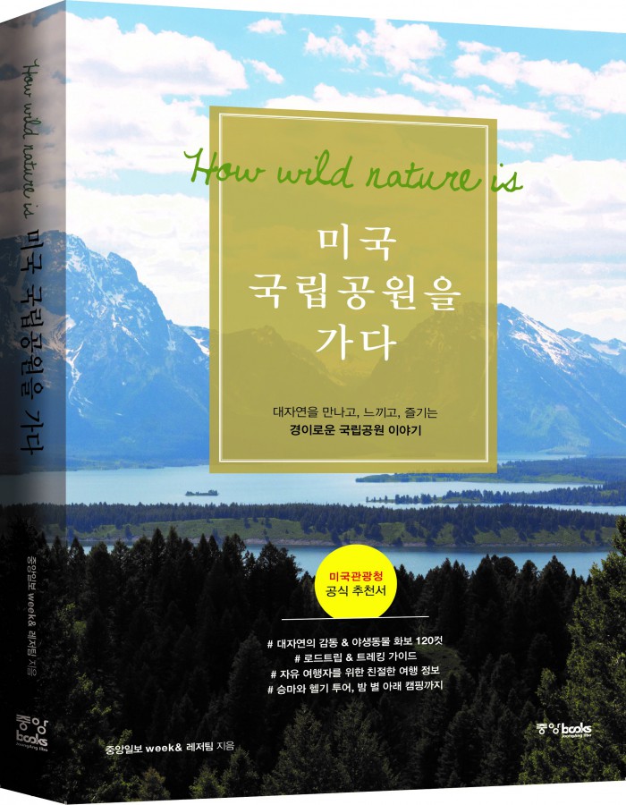 대자연의 풍광과 야생동물을 고스란히 담은 120컷 이상의 화보를 비롯해 여행자가 꿈꾸는 로드트립 & 트레킹 가이드, 승마와 헬기 투어 & 캠핑 등 대자연에서 즐길 수 있는 많은 것들을 담았다. 중앙북스. 1만5000원.'미국 국립공원을 가다' 표지.<사진제공=중앙북스>