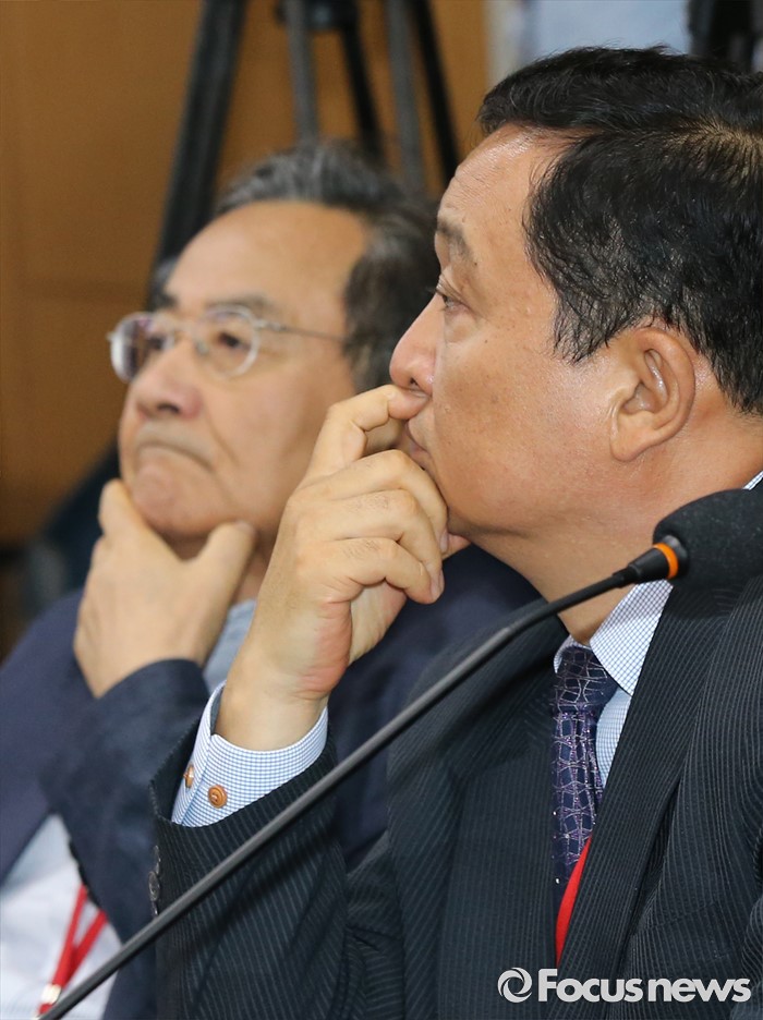 (세종=포커스뉴스) 김영석 해양수산부 장관 주재로 16일 오전 세종시 정부세종청사 해수부 중회의실에서 열린 세월호 공정 점검회의에서 참석자들이 회의에 앞서 생각에 잠겨 있다.