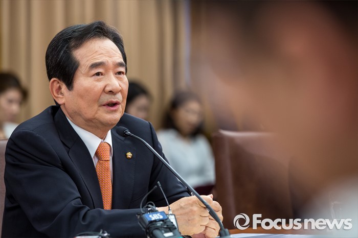 (서울=포커스뉴스) 정세균 국회의장이 16일 오전 서울 여의도 국회에서 열린 취임 기자간담회에 참석해 취재진 질문에 답하고 있다.