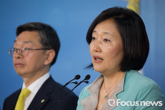 (서울=포커스뉴스) 16일 오전 서울 여의도 국회 정론관에서 박영선 더불어민주당 의원이 가습기 살균제 피해와 같은 대기업의 반사회적 불법행위를 막기 위한 '징벌적 배상법' 제정안 발의에 대한 기자회견을 하고 있다.