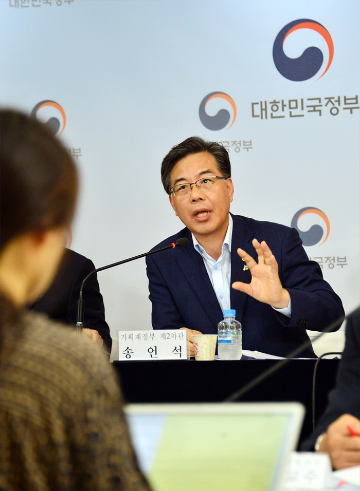 (서울=포커스뉴스) 송언석 기획재정부 차관이 6월 16일 정부서울청사에서 열린 '2015년도 공공기관 경영평가결과 및 후속 조치'와 관련하여 브리핑을 하고 있다. <사진제공=기획재정부>