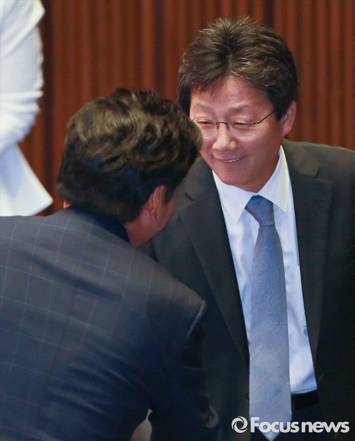 이들 4인의 복당으로 새누리당은 기존 122석에서 126석을 확보, 원내 1당의 자리를 굳혔다.(서울=포커스뉴스) 원유철(왼쪽) 새누리당 전 원내대표와 유승민 무소속 의원이 13일 오전 서울 여의도 국회에서 열린 20대 국회 개원식에 참석해 인사하고 있다. 2016.06.13 사진공동취재단