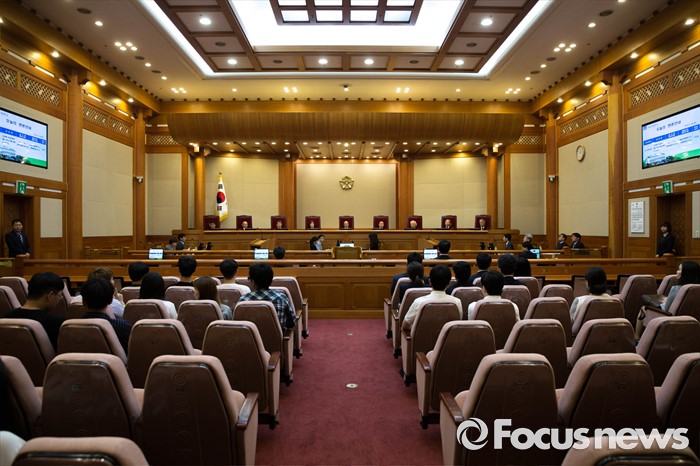 (서울=포커스뉴스) 16일 오후 서울 종로구 헌법재판소 대심판정에서 공공기관에 개인정보 요구 형사소송법 제199조 제2항 등 헌법소헌의 공개 변론이 열리고 있다.