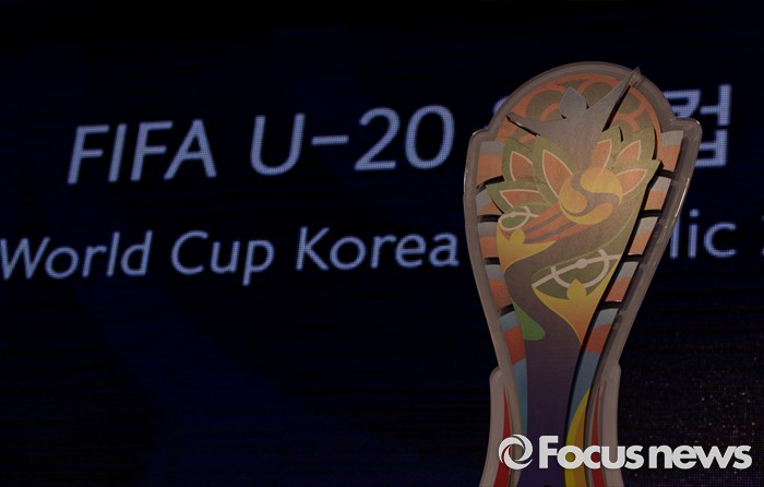 (서울=포커스뉴스) 16일 오후 서울 종로구 올레스퀘어에서 FIFA U-20 월드컵 엠블럼·슬로건이 발표되고 있다.