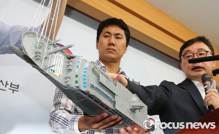 (세종-포커스뉴스) 김현태 세월호인양추진단 부단장이 16일 오후 세종시 정부세종청사 해양수산부 기자실에서 지난 14일 오후부터 중단된 세월호 선수들기 중단원인과 인양 공정에 대해 설명하고 있다.