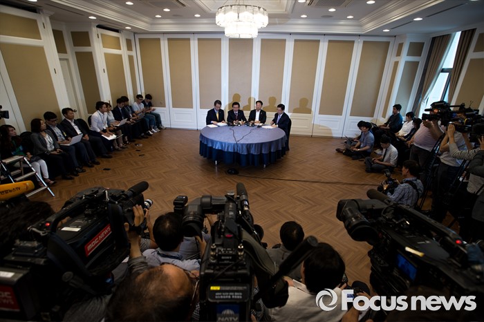 (서울=포커스뉴스) 16일 오후 서울 여의도 국회에서 열린 '2차 민생경제 현안점검회의'에 참석한 3당 정책위의장과 경제부총리가 회의 시작에 앞서 모두발언 하고 있다. 왼쪽부터 김성식 국민의당 정책위의장, 변재일 더불어민주당 정책위의장, 유일호 경제부총리 겸 기획재정부 장관, 김광림 새누리당 정책위의장.