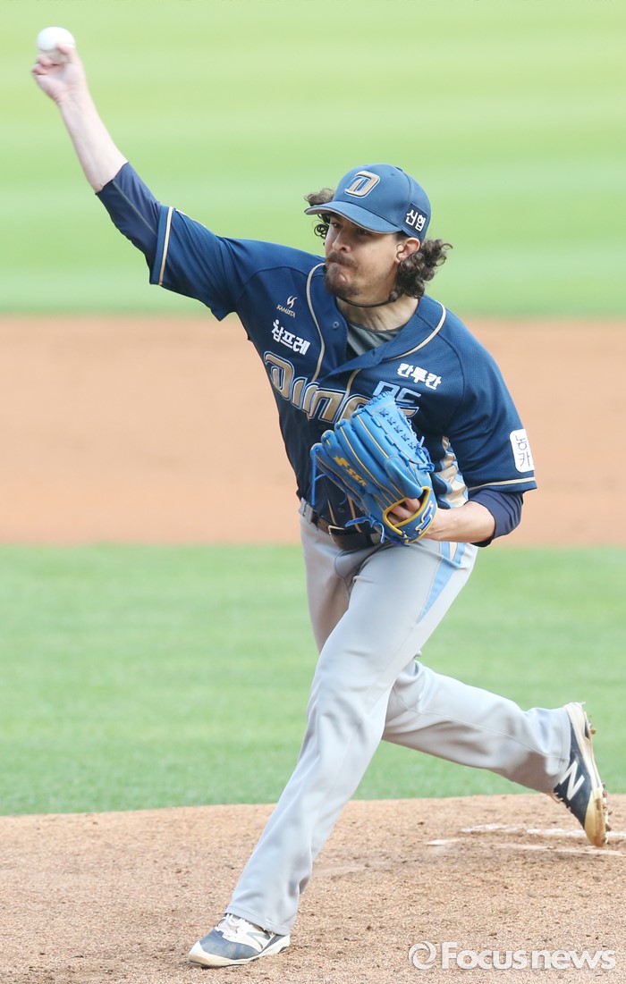 (서울=포커스뉴스) 16일 서울 잠실구장에서 열린 2016 프로야구 NC-LG 경기에서 1회말 NC 선발투수 스튜어트가 투구하고 있다.