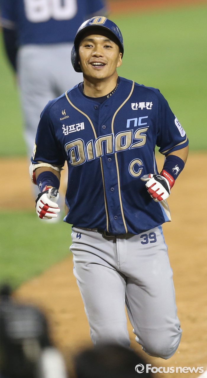 (서울=포커스뉴스) 16일 서울 잠실구장에서 열린 2016 프로야구 NC-LG 경기 9회초 2사 2루에서 NC 이종욱이 우월 2점 홈런을 치고 활짝 웃으며 홈인하고 있다.