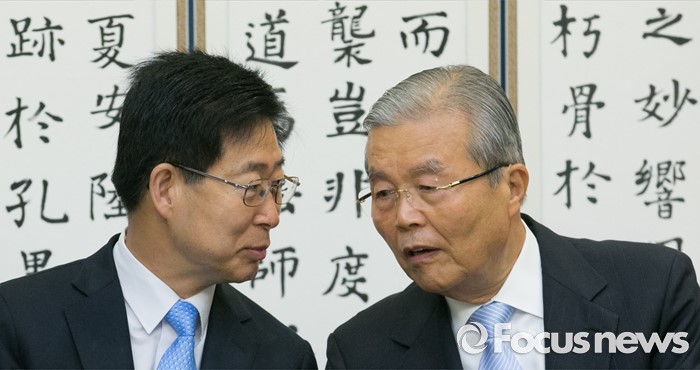 (서울=포커스뉴스) 17일 오전 서울 여의도 국회 귀빈식당에서 열린 국회 저출산극복 연구포럼 1차 회의에 참석한 김종인(오른쪽) 더불어민주당 비대위 대표와 포럼 공동대표인 양승조 의원이 대화하고 있다.