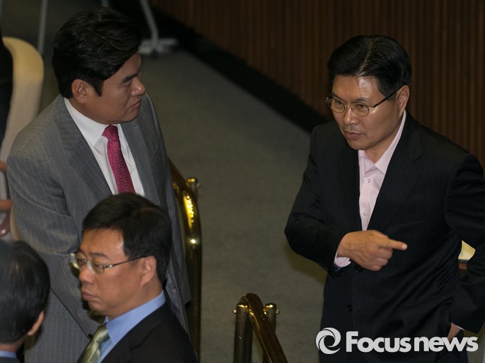 한편 그는 정세균 국회의장이 불붙인 개헌론과 관련해서는 "국회의장이 앞장서서 이 문제를 개진하기 시작하면 모든 이슈가 이리로 빠져들어간다"며 "개헌정국과 연결되면 정부는 아무것도 할 수 없는 그런 결과를 초래할 것"이라고 지적했다.19일 오전 서울 여의도 국회에서 열린 342회 국회(임시회) 1차 본회의에 참석한 원유철(왼쪽) 새누리당 전 원내대표와 홍문종 의원이 대화하고 있다. 2016.05.19 박동욱 기자