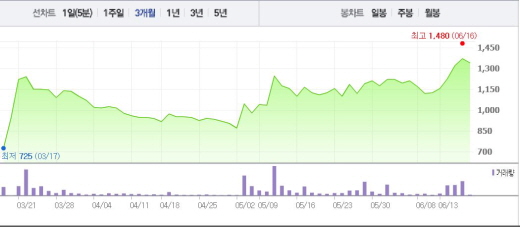 오성엘에스티는 17일 오전 9시38분 현재 전일 대비 2.92%(40원) 하락한 1330원에 거래되고 있다. 오성엘에스티는 10일부터 16일까지 1~7%의 상승폭을 기록하며 꾸준히 상승해왔다.