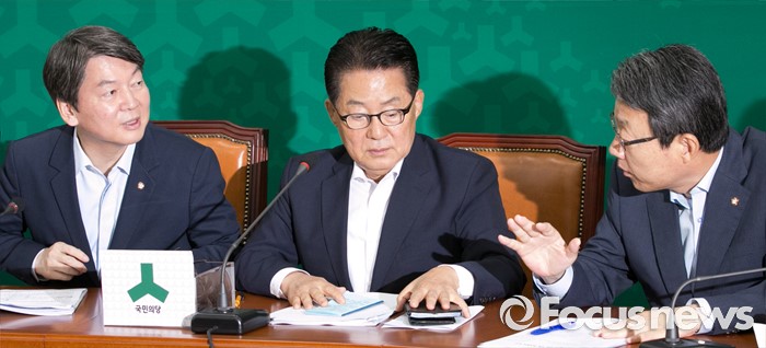 (서울=포커스뉴스) 17일 오전 서울 여의도 국회에서 열린 국민의당 최고위원회의에 참석한 안철수(왼쪽부터) 상임공동대표, 박지원 원내대표, 김성식 정책위의장이 대화하고 있다.