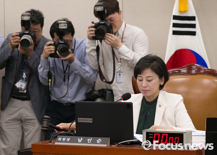 (서울=포커스뉴스) 17일 오전 서울 여의도 국회에서 열린 여성가족위원회 전체회의에 참석한 남인순 위원장이 안건 의결을 하고 있다.