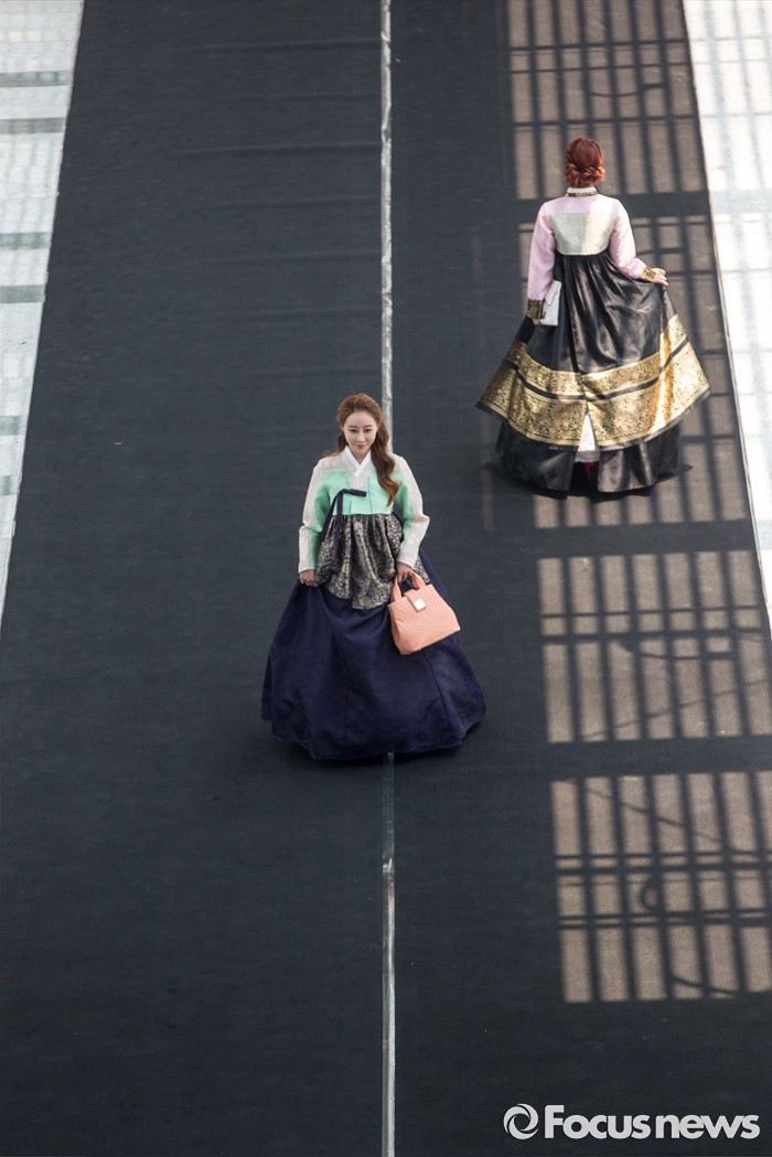 (서울=포커스뉴스) 17일 오후 서울 여의도 국회의원회관에서 열린 '2016 대한민국 국회 초청패션쇼-품'에서 모델들이 한복을 입고 멋진 워킹을 선보이고 있다.