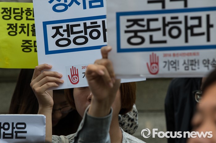 (서울=포커스뉴스) 17일 오후 서울 종로구 서울지방경찰청 앞에서 총선네트워크(총선넷) 회원들이 경찰 과잉수사 및 압수수색 규탄 기자회견을 하고 있다.