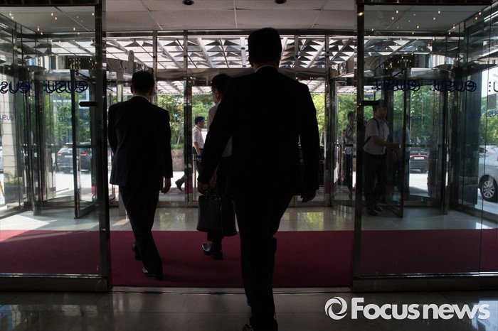 (서울=포커스뉴스) 17일 오후 서울 영등포구 한진해운 본사에서 한진해운 사채권자 집회 참석자들이 건물을 나서고 있다.